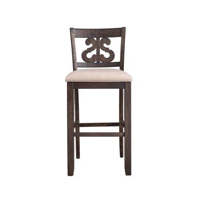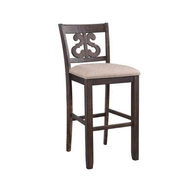The Picket House Furnishings Stanford 30″ Swirl Back Bar Stool Set is the perfect addition to your Stanford Dining Collection! This set comes with two bar stools. The backs feature a swirl back design adds extra flair to this already stylish set. The foam cushion seat will keep you comfy for hours. Distressed markings are present throughout that complements the smokey walnut finish. Expand your Stanford Dining Collection with these bar stools!