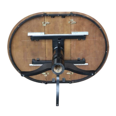 For those who appreciate high quality wood furniture with a traditional and elegant look. International Concepts home furnishings will complement any decor. This Round Dining Table has a dual-toned black and cherry finish, and is made of solid hardwood with a butcher block top ensuring years of use. The pedestal base has four feet for maximum support. It measures 36″ W x 36″ D x 28.9″ H, with a 2.5″ apron. The 12″ leaf extends the table to 48″ on steel glides. It is made for use with dining chairs. The table ships ready to assemble.