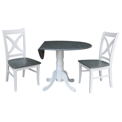 - 9 in. drop leaf on each side with a 24 in. x 42 in. center section