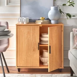 - Crafted of solid Rubberwood, MDF, fabric and foam