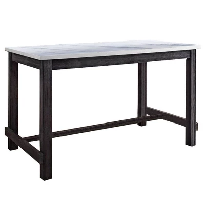 Combination of white marble and dark wood brings you an eye catching appearance The Yelena counter height table showcases a marble table top, providing brilliant white surface. A wooden trestle bese surpoorts the table for a classic, minimalist look. You can enjoy a fresh breakfast on this spacious, clean top, while rest your legs on the crossbar support under the top. Matching chairs and bench with amply padded seats to maximize your space.