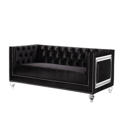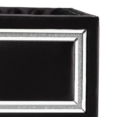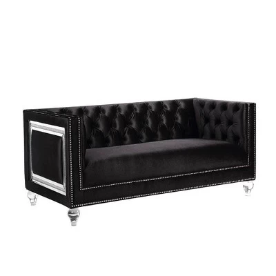 The Heibero Collection, is ideal for creating a glamorous living room. Featuring timeless button tufting and the more modernized fine details such as the mirrored trim accents. the black velvet upholstery is an eye-catcher. Have the best of both worlds contemporary and classic all in one with this collection. Solidly constructed, this sofa set rests securely on four acrylic legs. This collection is a perfect solution for providing seating for you and all your guests.