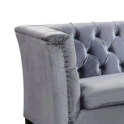 The Honor Sofa collection it’s the perfect option for your living room with comfortable and stunning features. Strength an beauty are guaranteed with sturdy wood frame, soft velvet upholstery, button tufted detailing and high shelter armrests. The Black wooden tapered legs and Nailhead trim complement these beautiful pieces adding an extra element of elegance. Fabric upholstery is an economical, environmentally friendly way to show off your eye for style and color. It allows for a multitude of patterns or color options.