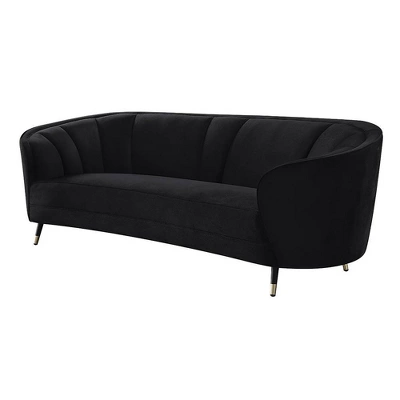 With its curved silhouette, high shelter armrests, and inviting velvet upholstery, the Achim Sofa adds a charming contemporary upgrade to your decor that will surely elevate it. Full-foam seat and deep channel stitching on plush velvet make seating feel extra soft and luxurious. Metal splay legs give the sofa an elegant support.