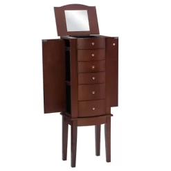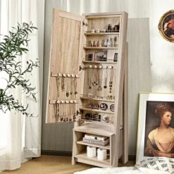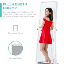 Best Choice Products 6-Tier Standing Mirror Lockable Storage Organizer Cabinet Armoire W/ LED Lights
