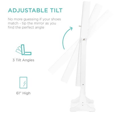 - DURABLE AND ADJUSTABLE: Built with a sturdy base that can be tilted to 3 different angles by utilizing the 2 sticks and 3 horizontal holes on its legs to give the best head-to-toe view of your outfit