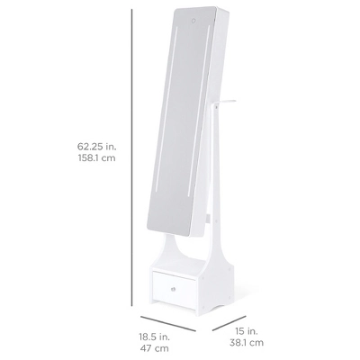 Best Choice Products Full Length LED Mirrored Jewelry Storage Organizer Cabinet W/ Interior & Exterior Lights