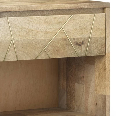Not like other nightstands or bedside table. The Bissell Bedside table features a unique geometric brass metal inlay design highlighted by the warmth of solid mango wood. A notched handle opens one soft-close spacious drawer. The open bottom compartment provides additional storage for books and other nighttime essentials. The Jager Bedside table is a nightstand you can’t help but brag about.