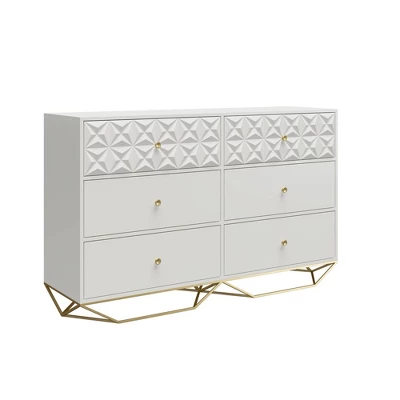 We are truly loving the stunning angles of the new Blair Collection! Now is the time to manifest your dream bedroom with CosmoLiving by Cosmopolitan. Featuring creamy white tactile 3D textures and glamorous gold accents, these geometric gems will have you posing for impromptu IG photoshoots at home on-the-daily. Constructed from sturdy engineered wood and powder-coated metal, the Blair 6 Drawer Dresser makes adulting a tad less daunting by providing ample space for all your pretty things. JSYK, the contemporary callouts don’t stop at the textured top! This art deco forward piece is anything but square with chic shapes all the way down to the base. It’s all the details, so what’s not to love!?