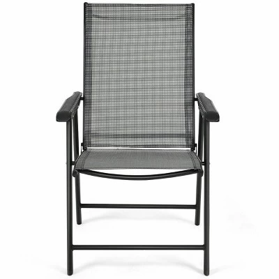 Costway 2PCS Folding Chairs Steel Frame Patio Garden Outdoor W/ Armrest & Footrest