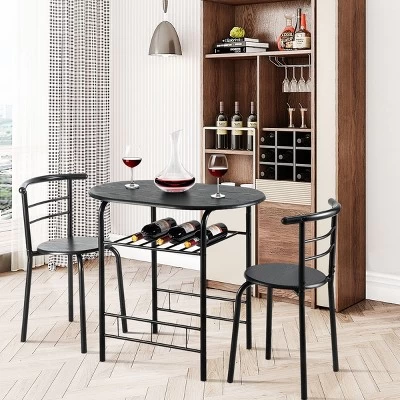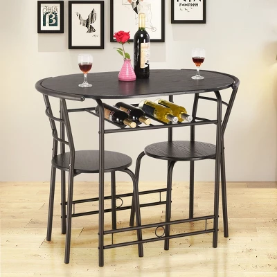 Costway 3 PCS Dining Set Table And 2 Chairs Home Kitchen Breakfast Bistro Pub Furniture Black