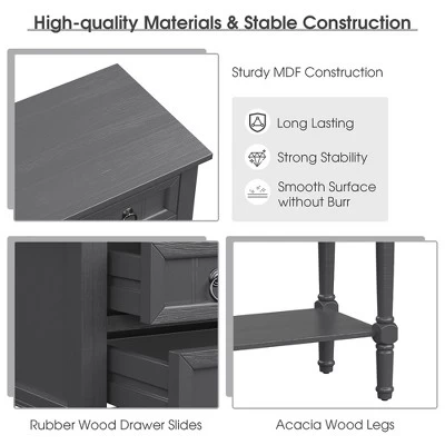 - High-quality Materials: Constructed from premium MDF boards, this hall stand table features a stable construction. The smooth surface without burrs is easy to clean. Besides, the rubber wood drawer slides and acacia wood legs also provide a strong stability and make this end table long lasting.