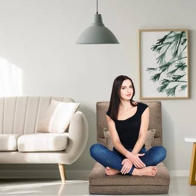 This Is Our multiuse floor chair, which is perfect for providing great support for reading, meditating, watching TV or playing games. Made with Flannel fabric and stuffed with high-density foam, this chair offers comfort and support for floor seating. With the durable and sturdy iron frame, the back can be easily adjusted to 90 degree from flat to upright and withstands weight up to 220 Lbs. Perfect for small spaces, this lightweight, versatile chair can be easily moved around and placed on any clean and dry surface.