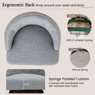Costway Set Of 4 Swivel Bar Stools Tufted Bar Height Pub Chairs With Rubber Wood Legs Grey/Beige