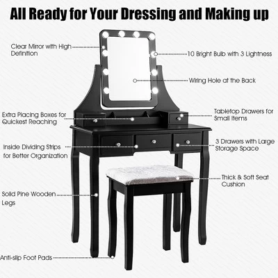 - 5 drawers and a storage bo x easily help to store your cosmetics and jewelry