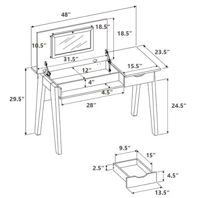 - Flip Tabletop & 2-in-1 Design: The flip-up tabletop can facilitate your dressing up with wide view and save space when not in use. When you lift up the tabletop, the table can serve as a premium vanity table to satisfy your dressing need; if you put it down, the table can be used as a writing desk for studying and working.