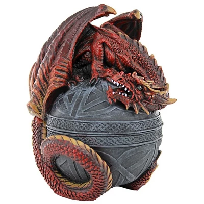 Wrapping his spiny tail in a protective crouch, our Toscano-exclusive dragon by artist Liam Manchester is fraught with menacing sculptural detail that has made this master artist├óΓé¼Γäós work so very collectible. His wonderfully imaginative, Celtic-knot embellished orb, cast in quality designer resin, opens to cradle your treasures of the realm. 4″Wx5″Dx6½”H. 2 lbs.