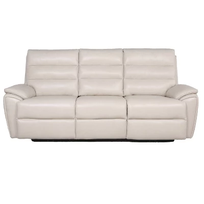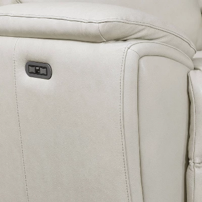 Contemporary styling in a modern ivory leather application, the Duval power sofa features both a power footrest and articulating power headrest for the ultimate in comfortable seating. A horizontal channeled back, and top-grain leather adds a luxurious touch that is durable, comfortable and beautiful.