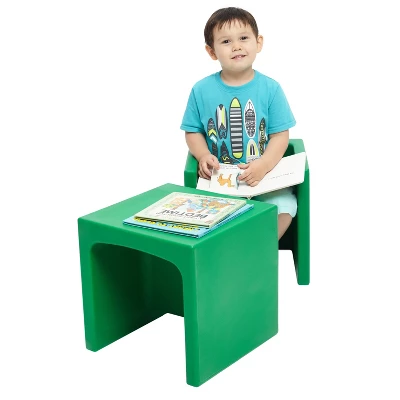 Tri-Me Adaptable Cube Chair offers the appeal of 3-in-1 fun. Children and adults can transform the cube chair from a 6” seat, to a 9.75” seat, or flip it to use as a table. The graduated sizes allow this plastic weaning chair to grow with your child, even using the tabletop surface as a stool seat later. This lightweight toddler chair features a curved seat-back design that hugs children keeping them comfortable, and encouraging proper posture for coloring, playing with building blocks, board games, or other seated activities. Kids benefit from alternative seating that allows for less fidgeting, more collaboration, and confidence in choosing their educational set-up. The one-piece design is crafted from durable UV-protected plastic with a textured surface and rounded edges for safety that won’t chip, crack or peel under typical conditions. This multipurpose indoor or outdoor furniture is designed for everyday use in the classroom or at home. The toddler chair is a great seating option for the kitchen, living room, or outside on the playground or patio. When learning time is over, chairs can be placed on top of each other using the built-in ridges to save valuable floor space; additional chairs are sold separately.