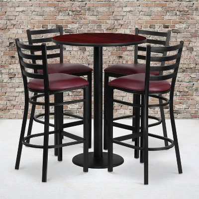 Emma And Oliver 30″ Round Laminate Table Set With 4 Ladder Back Metal Stools