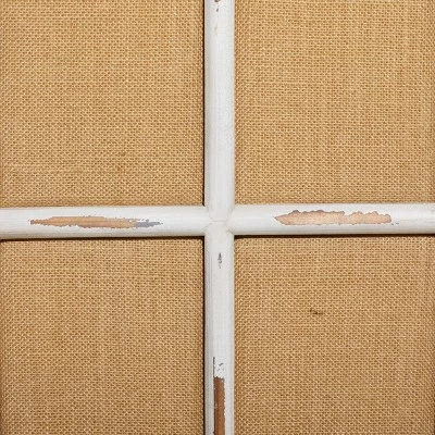 - •White wood room dividers features a 3 panels design with metal hinges for convenient configuration in an arched window style structure covered in beige burlap for a complete rustic look