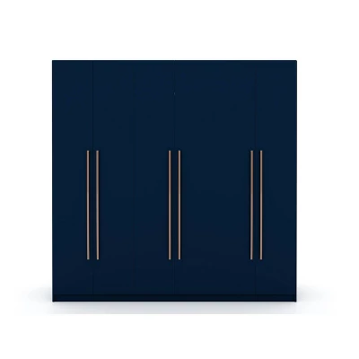 - 3- Sectional Wardrobe Includes 4 Fixed Shelves, 4 Aluminum Hanging Rods, and 2 Center Drawers.