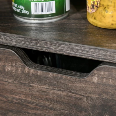HOMCOM Industrial Sideboard, Freestanding Coffee Bar Cabinet, Buffet Cabinet With 2 Drawers, 2 Shelves & Metal Mesh Door, Dark Brown/Black