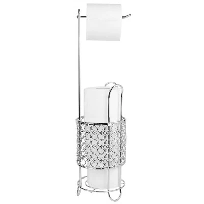 Perfect for when cabinet space Is limited, this toilet paper holder conveniently holds up to 2 extra rolls in its base and dispense one at the top. Free-standing, this light yet sturdy holder allows you to place it wherever you desire. Set it alongside the toilet or place it discreetly in the corner. Its sleek size takes minimal room, while its ornate detailing along the base brings an elegant touch to the bath.