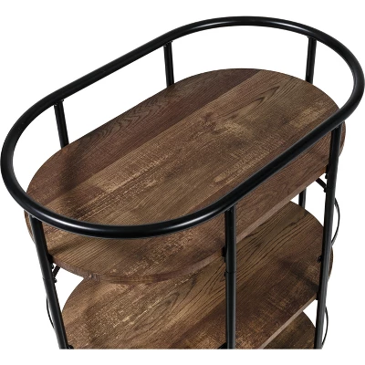 This 3-tier black and rustic brown bar cart is the life of any party as it stylishly makes its way from room to room, and when it gets there two of its rubber casters lock to hold it firmly in place. Three roomy shelves can handle anything from spirits and shakers to glasses and bottles, with the occasional snack thrown in for good measure. Its sturdy frame includes rails on all three shelves to keep everything securely in place. And as Saturday night blurs into Sunday morning, it doubles as a coffee cart or an everyday kitchen cart in the busiest room in your home.
