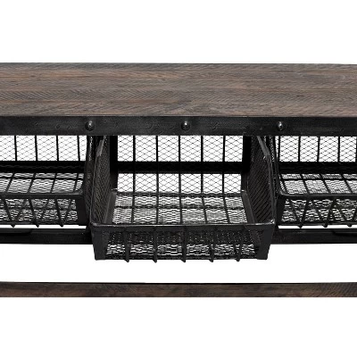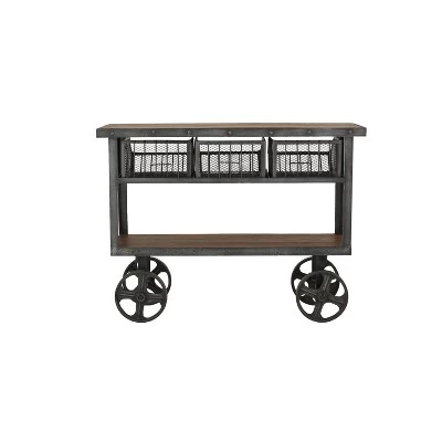 - •Reclaimed wood is used to form the top and shelf, while metal is welded to frame it all with wheels and furnished with 3 basket drawers