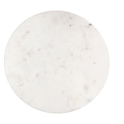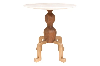 Elegant white marble topAcacia wood stained walnut wood columnMatte brushed iron legs with gold electroplatingUltra modern unique leg designAlso available in wood (sold separately)