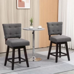 HOMCOM Swivel Bar Stools Set Of 2, Fabric Tufted Counter Height Bar Stools With Rubber Wood Legs And Footrest For Dining Room, Kitchen, Pub, Dark Gray