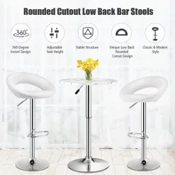 Costway Set Of 2 Bar Stools Adjustable PU Leather Barstools Swivel Pub Chairs White