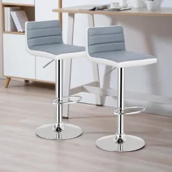 Costway Set Of 2 Bar Stools Adjustable Barstool PU Leather Swivel Pub Chairs Armless
