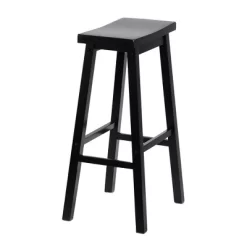 PJ Wood Classic Saddle-Seat 29″ Tall Kitchen Counter Stools For Homes, Dining Spaces, And Bars With Backless Seats And 4 Square Legs, Black (4 Pack)
