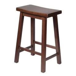 PJ Wood Classic Saddle-Seat 24” Tall Kitchen Counter Stool For Homes, Dining Spaces, And Bars With Backless Seat, 4 Square Legs, Walnut (2 Pack)