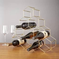 Viski Geo Gold Bottle Wine Rack, Honeycomb Design