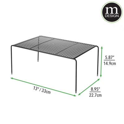The mDesign Closet Organizer Storage Shelf makes the most of the unused storage space in your bedroom, linen shelves, hallways closets, vanity counter tops and cupboards. The two-tier design makes it easy to maximize small spaces by providing double the storage. Store everything from clothing, cosmetics, health and beauty items to fashion accessories. The versatile design works with any decor. Mix and match with other mDesign products with the same design and color to create a custom storage solution and a cohesive look for your home.