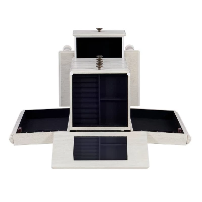 - Multiple storage sections accommodate various size jewelry