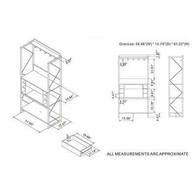 - 67.22 in. H x 33.46 in. W x 15.75 in. D
