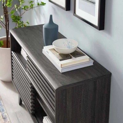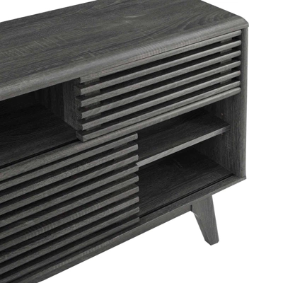 Tap into mid-century aesthetics with the Render 48” TV Stand. Render features a durable particleboard frame with smooth walnut grain laminate, four tapered wood legs, non-marking foam foot pads, and a slatted sliding door for sophisticated media storage. Complete with a cable management hole on both sides, Render’s contemporary linear style is the perfect addition to the modern living room, lounge or recreation area.