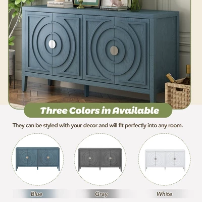 Retro 60″ Sideboard With Circular Groove Design And Round Metal Handle-ModernLuxe
