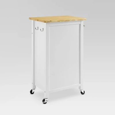 Organize your kitchen with the space-saving design of the Savannah Compact Kitchen Island/Cart. Ideal for adding extra storage and workspace, this island offers a solid natural wood countertop and large cabinet with an adjustable shelf inside. The caster wheels on that base allow you to create a flexible food prep or serving space, while the full-extension drawer adds an ideal spot to tuck away everyday items. By adding a towel bar on one side and two utility hooks on the other, the Savannah Compact Kitchen Island addresses all of your at-home chef needs.