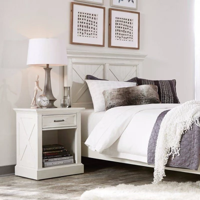 Whether outfitting the master bedroom or making a guest room feel like a guest suite, add the finishing touches with this Homestyles Seaside Lodge Nightstand. Versatile storage allows you to either conceal or display your belongings, and keep things close at hand while sleeping. The off-white finish brings a coastal feel into any bedroom and the coastal style creates a light, casual feel.