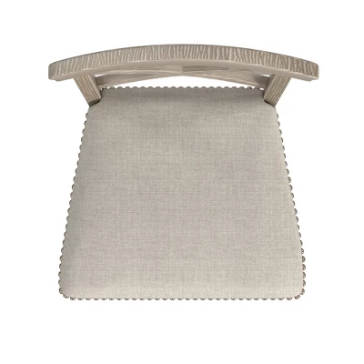 Have you put a lot of work into creating the kitchen of your dreams with the perfect island or infinity countertop? Don’t hide it! With this set of two White Counter Height Stools with low profile X-backs, you have the perfect place to sit and share a cup of coffee with a friend and hide them sleekly away when you’re finished to allow your marble, quartz, or granite to be the star. Best of all, the white wire brush wood finish and light gray, easily cleanable performance seat with nailhead trim make them stylish pieces that adapt to many types of decor styles. Assembly required.