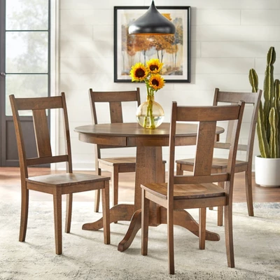 Add rustic charm to your dining room or kitchen with the Athens Dining Chair (Set of 2) from Buylateral. This dining chair features a timeless tailored fiddleback design which enables it to coordinate well with many dining tables styles. Constructed of solid rubberwood, it is finished in a warm walnut and combines well with many interiors.