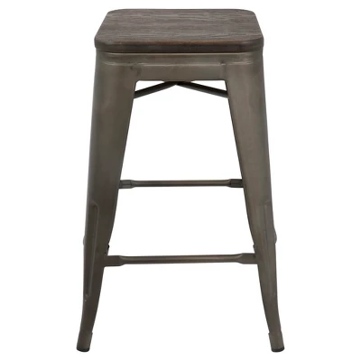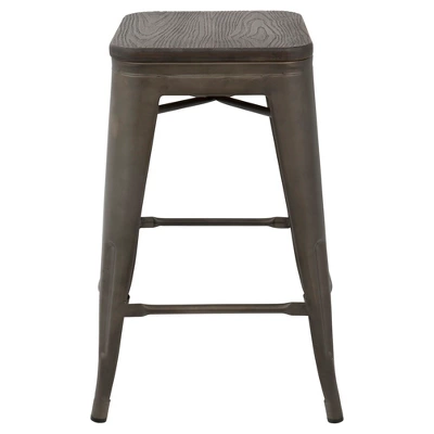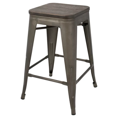 Set Of 2 Oregon Industrial Stackable Counter Height Barstool With Frame Antique Wood – Lumisource