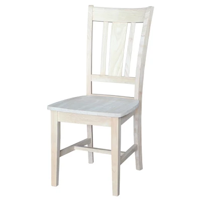 International Concepts home furniture is for those who appreciate high quality, wood furniture with a traditional and elegant look. This piece will beautifully complement any decor in your home. The San Remo dining chair is made from solid hardwood. It features a splat back and measures 17.3″W x 21.9″D x 38.2″H. The seat is 17.7″H and is 17.3″W x 16.3″D. This set of two chairs ships ready to assemble.
