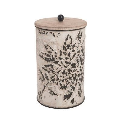- Style: These decorative metal canisters feature a distressed whitewashed shibori floral pattern over a galvanized metal base.