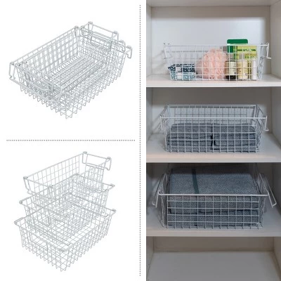 - DURABLE DESIGN – These kitchen storage containers are made of durable metal wire with smooth edges for safety and lasting use. The attractive white color of the shelf organizer set is sure to blend in with most décor styles.